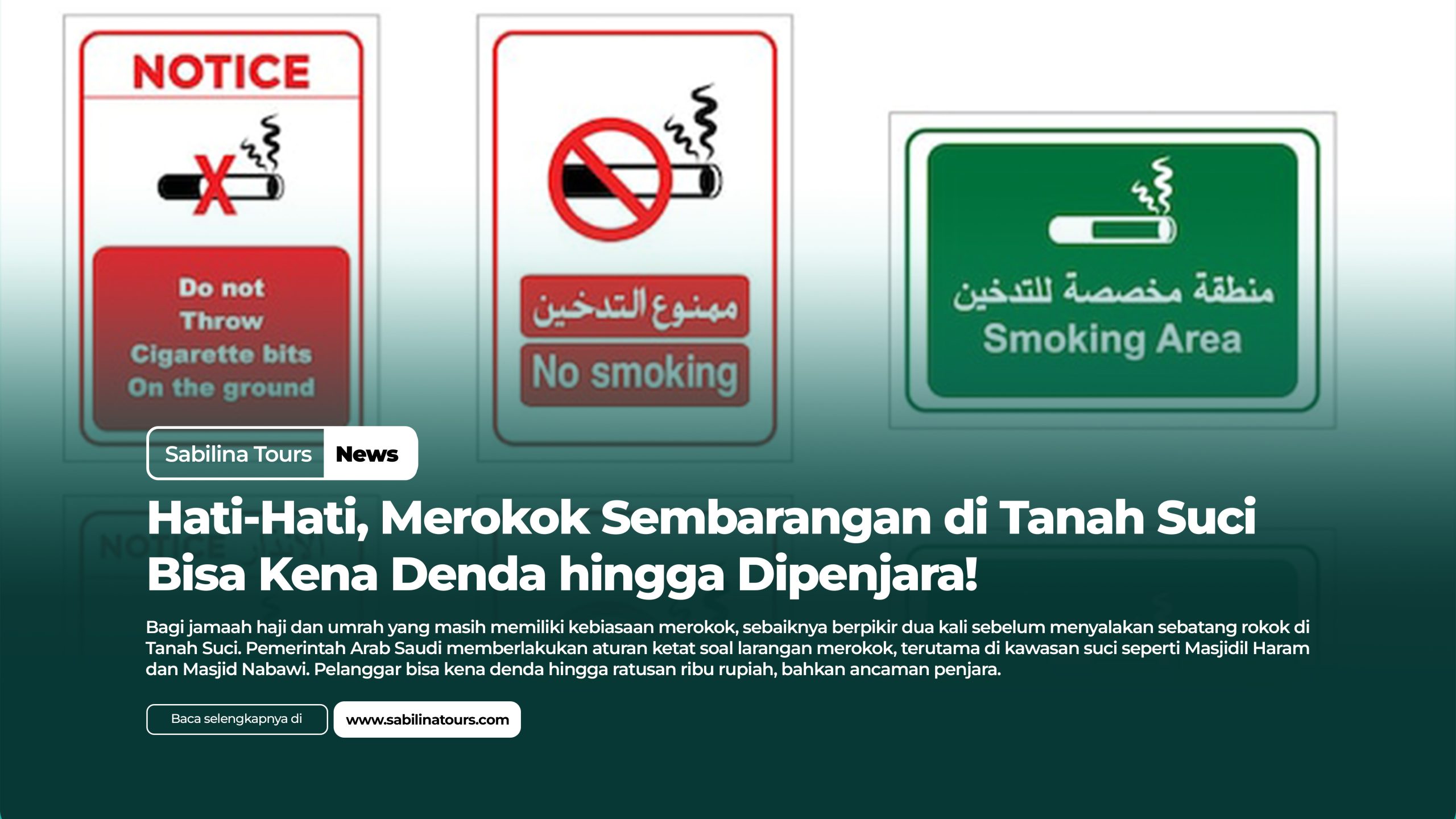 Merokok di Tanah Suci bukan sekadar urusan pribadi. Di Arab Saudi, tindakan itu bisa berimplikasi hukum, sosial, dan moral. Karena itu, jamaah diimbau menahan diri dan menghormati aturan setempat. Ibadah yang khusyuk akan jauh lebih berarti tanpa asap rokok yang mengganggu.